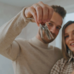 家の鍵を見せびらかす若い夫婦