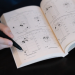 本を開いて勉強している