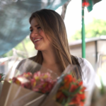 花束を見て喜ぶ女性