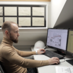 自宅で投資する男性
