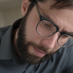集中して作業する男性