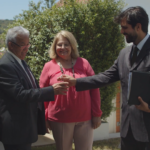 左から出てきて左に消えるしましま背景の枠だけテロップ