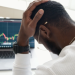 PC画面を見て頭を抱える男