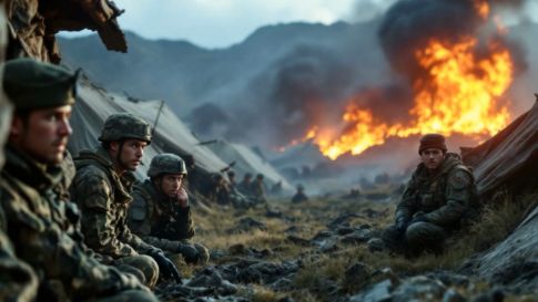 戦場で待機する兵士たち