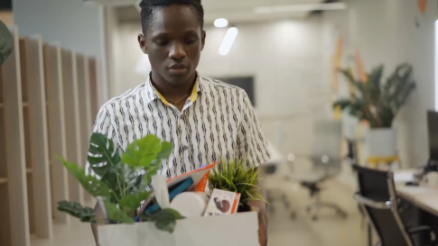 廃棄物を持って首を振る男性