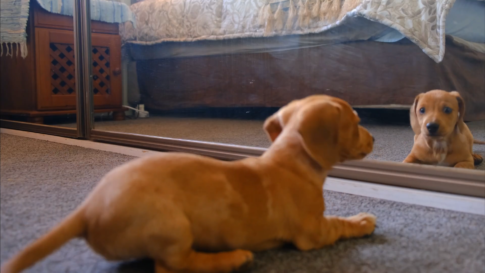 左から出てきて左に消えるしましま背景の枠だけテロップ