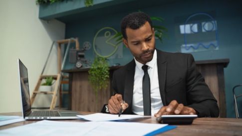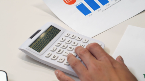 真剣・まじめ・集中グラフを見て電卓をはじく