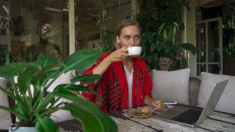 女性一人カフェでコーヒーを飲む女性