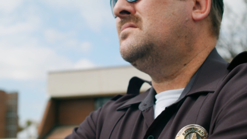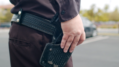 男性一人拳銃に手をかける警察
