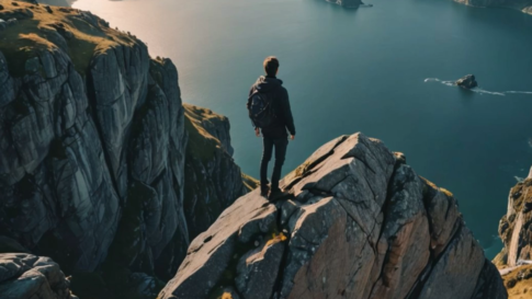 男性一人断崖絶壁に立つ男性