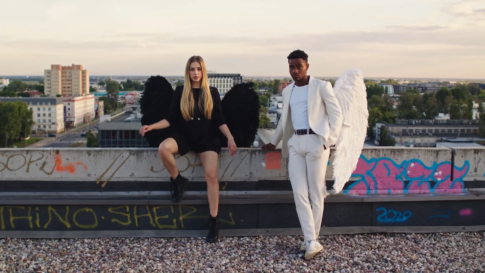 右から出てきて右に消えるしましま背景の枠だけテロップ