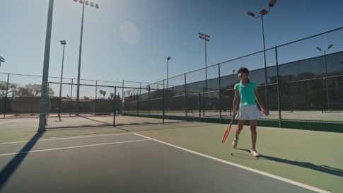 テニスをする少女