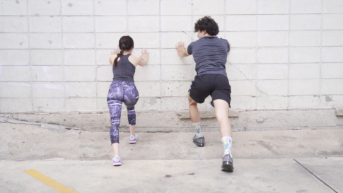 アキレス腱を伸ばすスポーツマン