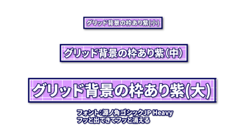 フッと現れてフッと消えるグリッドテロップ発注名小:グリッド背景の枠、飾りあり紫フッと出てきてフッと消える小中:グリッド背景の枠、飾りあり紫フッと出てきてフッと消える中大:グリッド背景の枠、飾りあり紫フッと出てきてフッと消える大※スマホの場合、長押しでコピーでき...