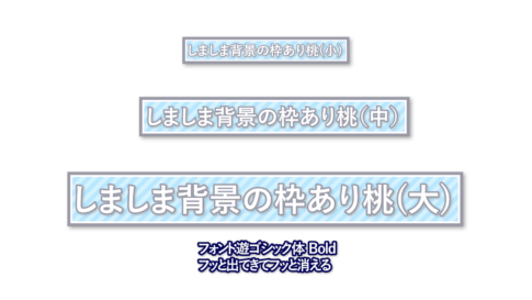 フッと出てきてフッと消えるしましまテロップ発注名小:しましま背景の枠あり水うっすら出てきてうっすら消える小中:しましま背景の枠あり水うっすら出てきてうっすら消える中大:しましま背景の枠あり水うっすら出てきてうっすら消える大※スマホの場合、長押しでコピーできますフ...