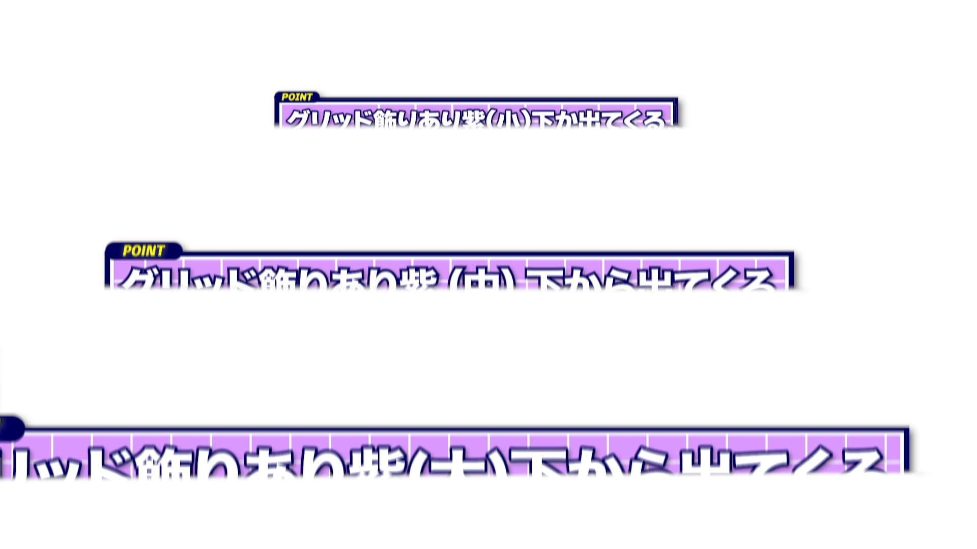 下から出てきて来たに消えるグリッドテロップ発注名小:グリッド背景の枠ありレンガ下から出てきて下に消える小中:グリッド背景の枠ありレンガ下から出てきて下に消える中大:グリッド背景の枠ありレンガ下から出てきて下に消える大※スマホの場合、長押しでコピーできますフォント...